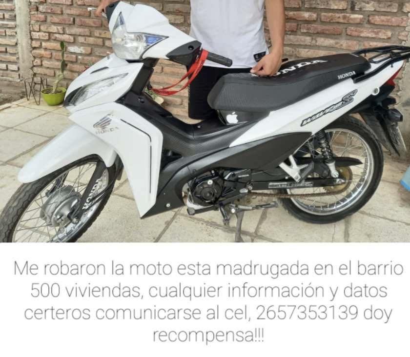 Brian, un estudiante de Villa Mercedes, fue víctima de un robo que lo dejó sin su preciada moto Honda Wave, el regalo que sus padres le hicieron al cumplir 18 años. El hecho ocurrió en la madrugada del sábado, durante una fiesta en el barrio 500 Viviendas.