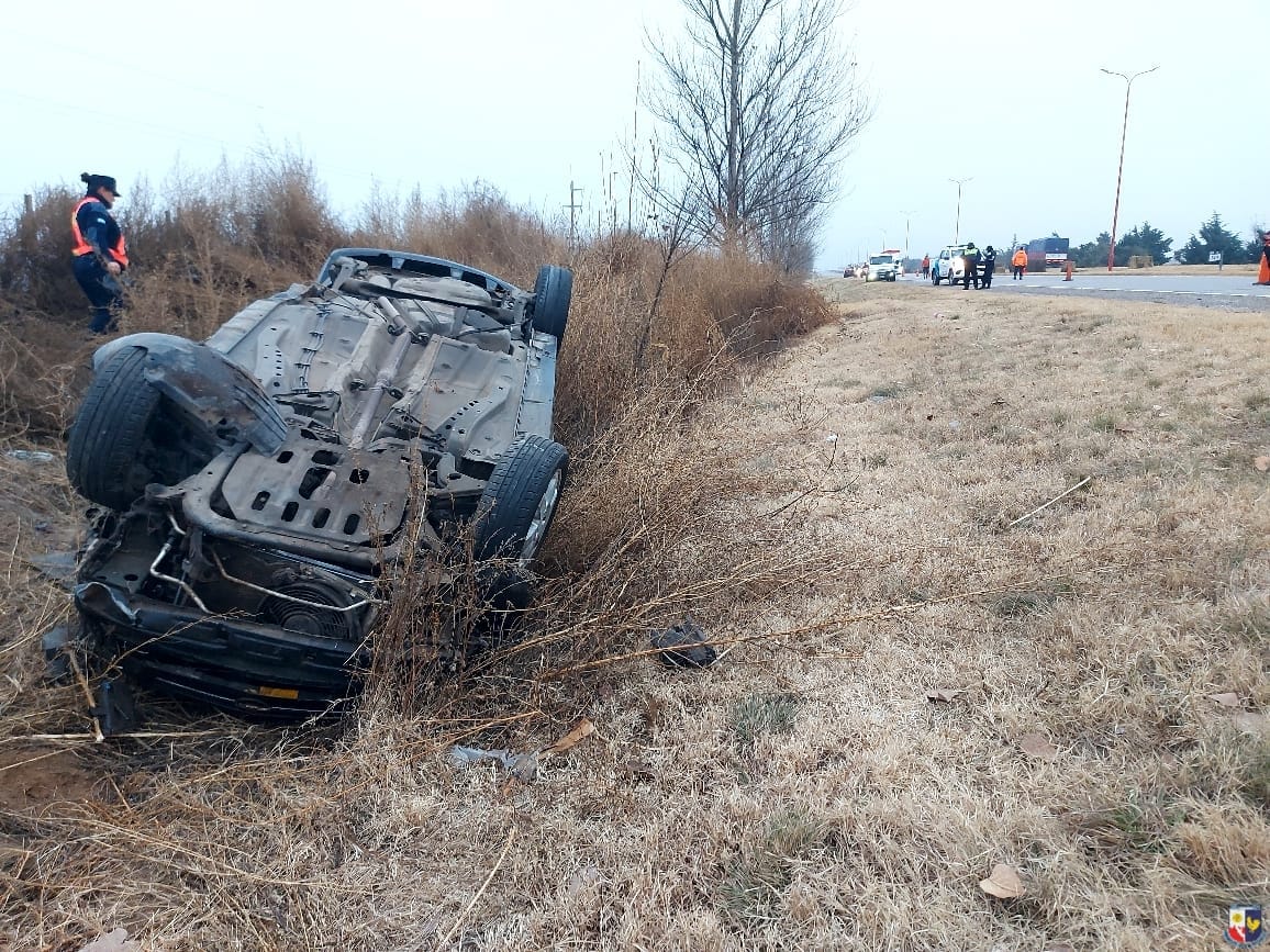Por causas que se investigan, el conductor perdió el control del vehículo, que volcó sobre la banquina y terminó con las ruedas hacia arriba. Ambos ocupantes quedaron atrapados en el interior del rodado y debieron ser rescatados por los equipos de emergencia.
