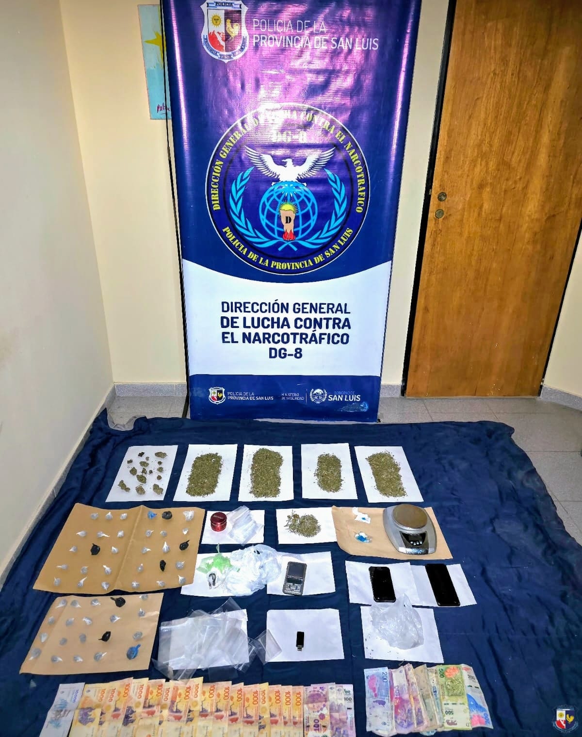 El operativo fue ejecutado por la Dirección General de Lucha Contra el Narcotráfico y ordenado por el Juzgado Federal de San Luis. El procedimiento tuvo lugar en un domicilio de calle Colón al 1200, donde se desarticuló un centro de venta y distribución de estupefacientes.