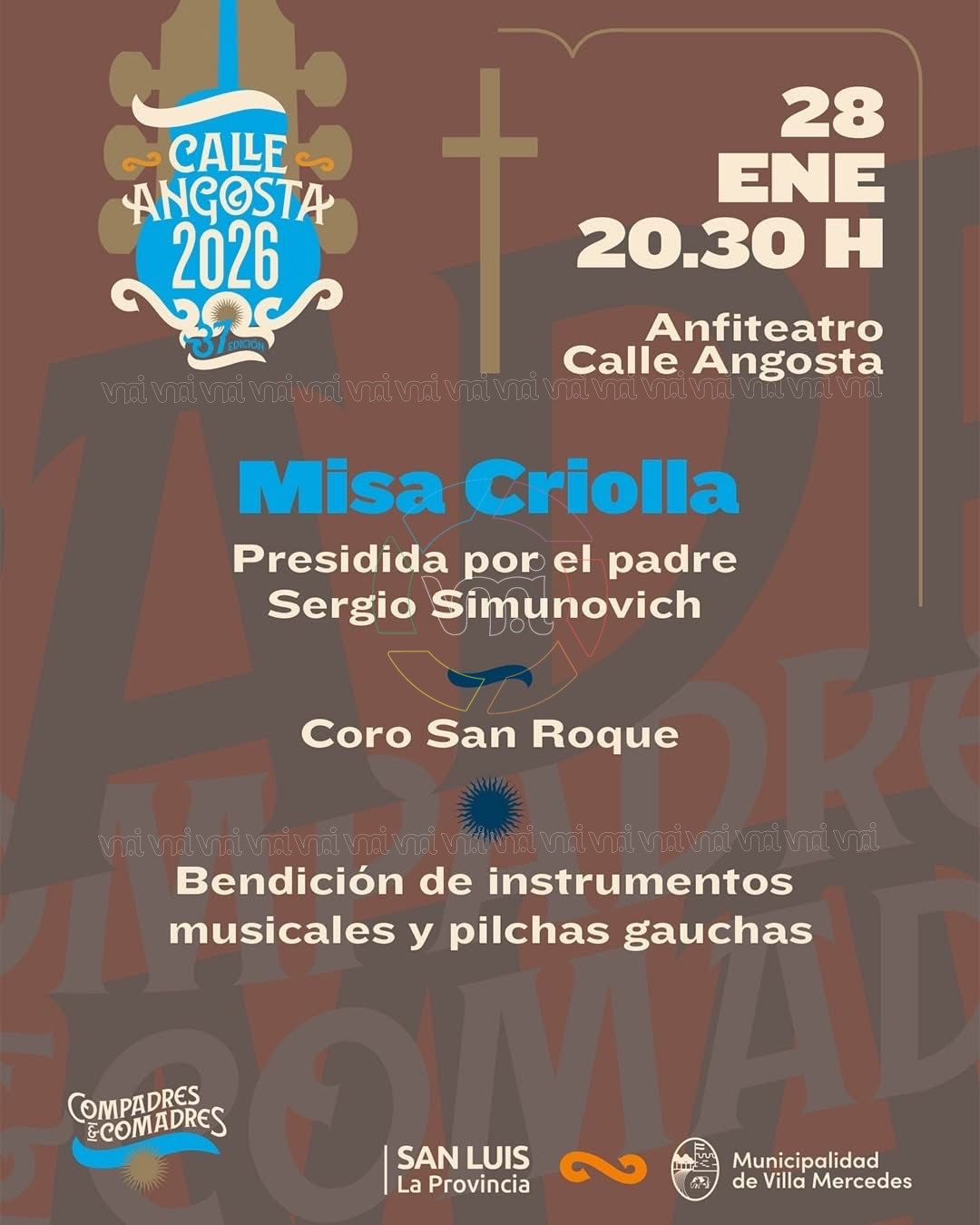 La Misa Criolla, compuesta en 1964 por Ariel Ramírez, fusiona la estructura litúrgica católica con ritmos del folclore nacional, y será el eje espiritual del acto inaugural. La ceremonia religiosa estará presidida por el padre Sergio Simunovich, e incluirá un momento de alto valor simbólico: la bendición de los instrumentos musicales y la vestimenta gaucha, elementos que representan el alma del folclore, el trabajo del artista popular y la herencia cultural transmitida de generación en generación.