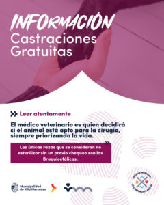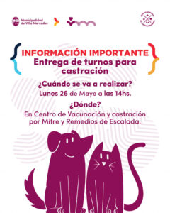 El próximo lunes 26 a las 14 hs, se entregarán turnos para castraciones de mascotas en Av. Mitre y Remedios Escalada. Es importante recordar que los animales pueden ser castrados a partir de los 4 meses, siempre y cuando cumplan con las condiciones de salud evaluadas por un veterinario.