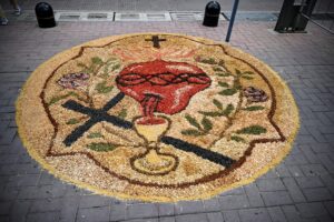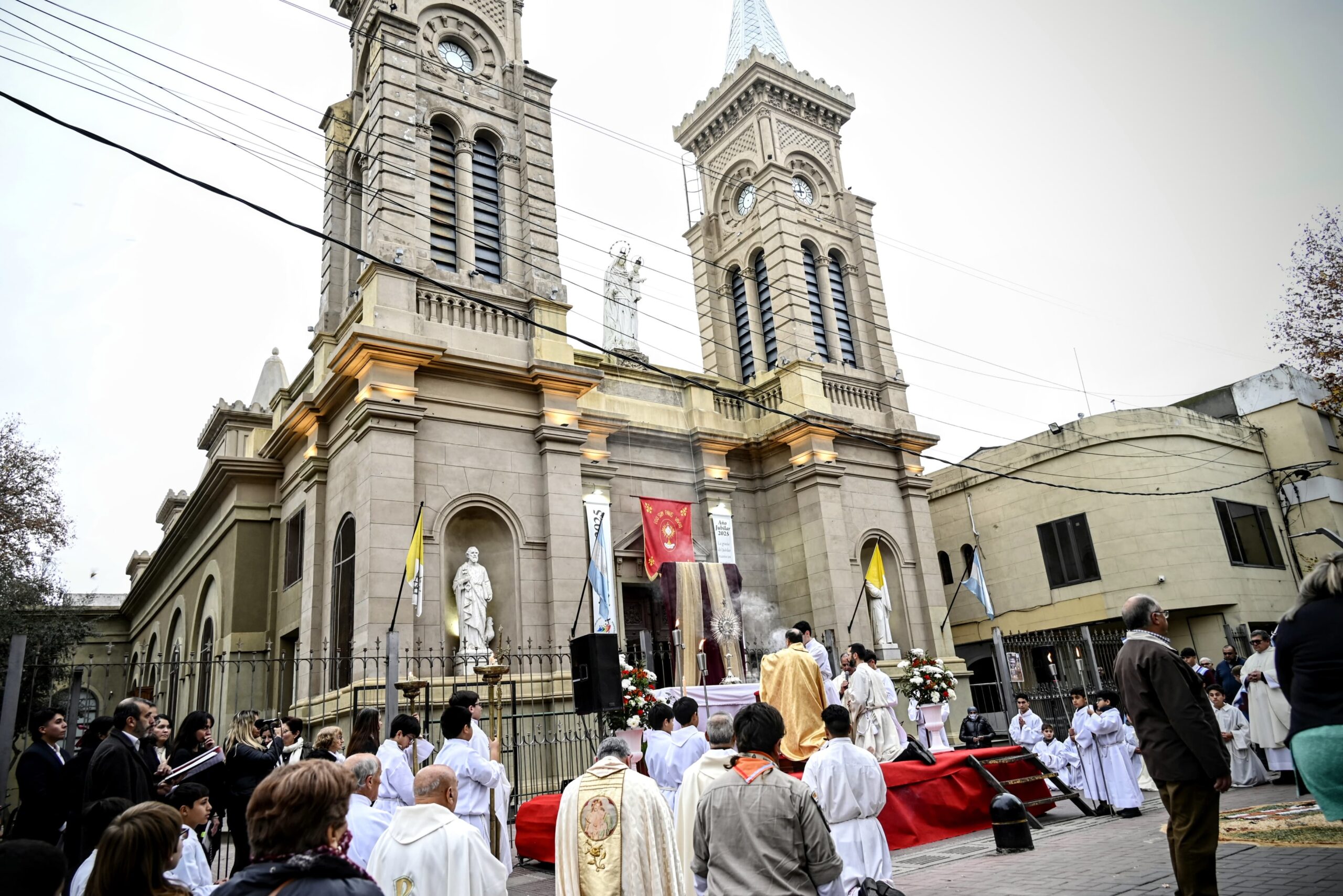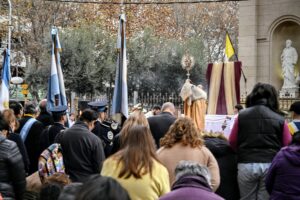 Luego de la misa, los fieles participaron de la procesión por las calles cercanas al templo, reafirmando la creencia central de esta solemnidad: la presencia real de Jesús en el pan y el vino consagrados.
