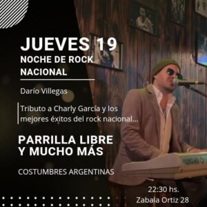 El próximo jueves 19 de junio, el reconocido músico local Darío Villegas se presentará en Costumbres Argentinas, la tradicional parrilla de Villa Mercedes. La cita es a partir de las 22:30, ideal para disfrutar la previa del feriado por el Día de la Bandera, que se conmemora cada 20 de junio.