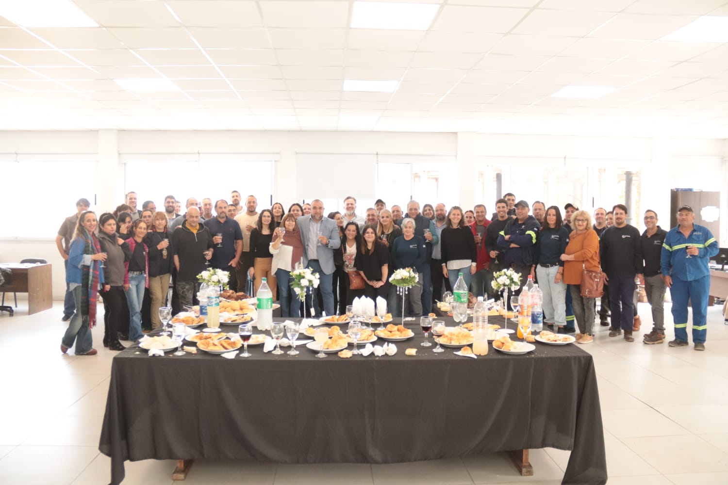 La celebración tuvo lugar en la planta alta del edificio administrativo, donde se reunieron autoridades y personal en un cálido brindis. Acompañaron el momento el intendente Maximiliano Frontera, la viceintendente Silvina Galetto, el administrador de Obras Sanitarias Sebastián Estrada y el secretario general del Sindicato de Obras Sanitarias Mercedes, José Ucelay.