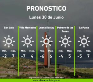 Para la ciudad de Villa Mercedes, el pronóstico anticipa una mínima de -7°C y una máxima de apenas 4°C.