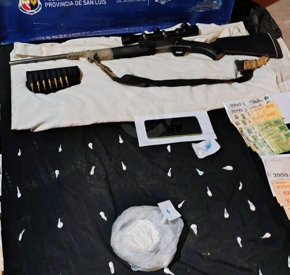 El primero tuvo lugar en una vivienda de calle Guayaquil al 1000, donde la Policía incautó envoltorios con cocaína, un teléfono celular, $123.100 en efectivo y un fusil calibre 30.06 con mira telescópica y siete cartuchos, elementos que quedaron bajo custodia de la Comisaría Seccional 36°.