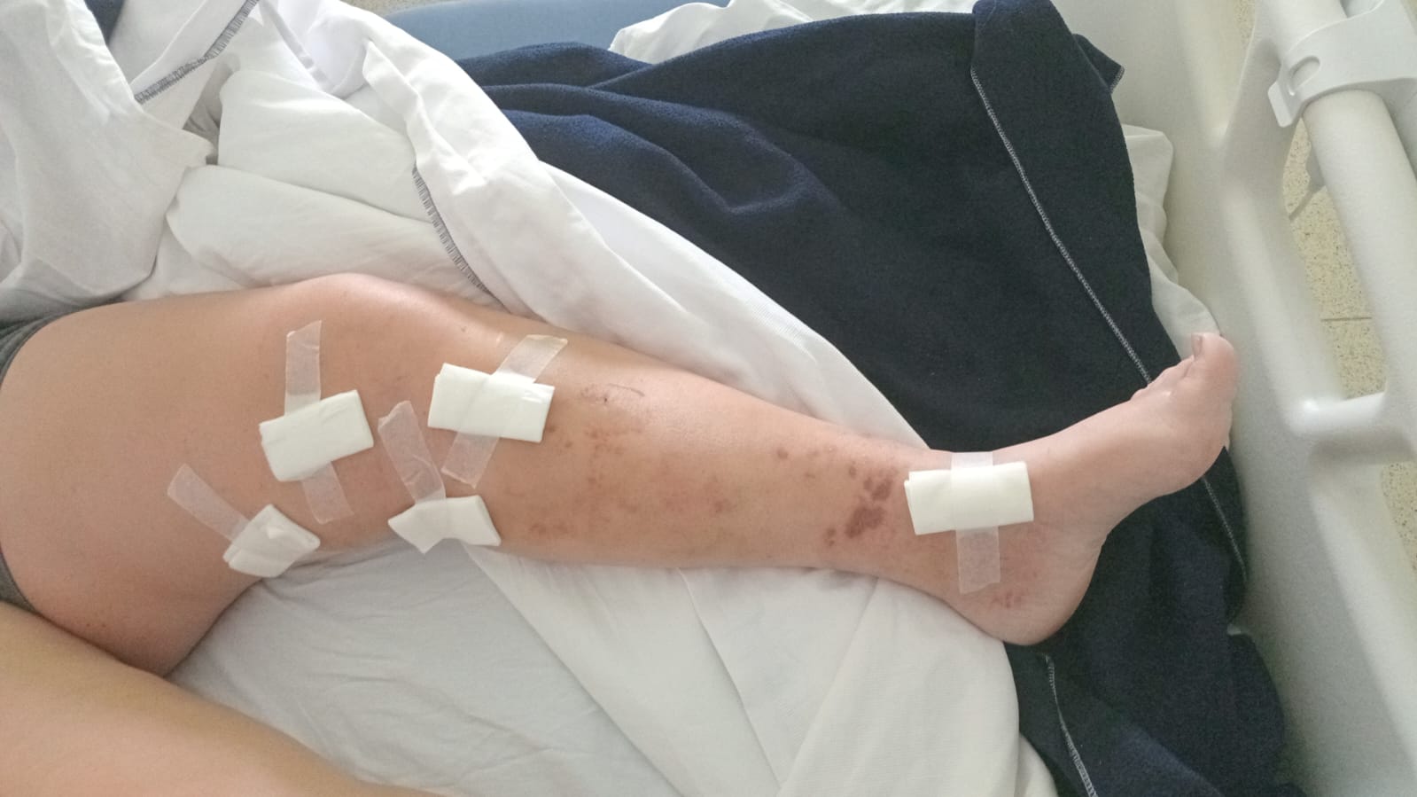 María Eugenia Rosales, de 48 años de edad, actualmente se encuentra internada de urgencia en el Hospital Carrillo tras haber sido operada por una trombosis en la pierna izquierda. La operación se realizó el lunes 5 de mayo, y ese mismo día por la noche recibió el alta médica. Sin embargo, al cabo de unos días, su pierna volvió a inflamarse gravemente.