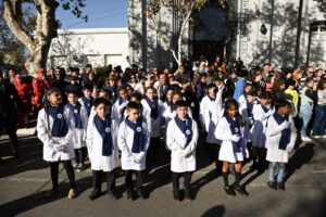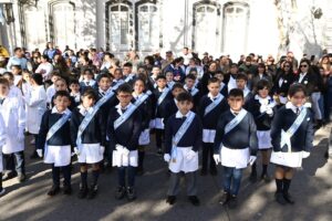En el marco del Día de la Bandera, se llevó a cabo un acto conmemorativo frente al edificio municipal de Villa Mercedes, donde se recordó al prócer Manuel Belgrano, a 205 años de su fallecimiento. La actividad contó con un emotivo momento central: la promesa de lealtad a la Bandera Nacional por parte de 400 estudiantes de 4º grado de diversas instituciones educativas de la ciudad.