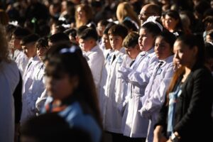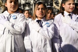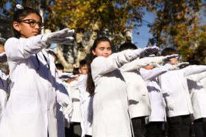 Participaron alumnos de las escuelas José Hernández, Provincia de Santa Fe, Juan B. Alberdi, Nelly Chenau de Vecino, Provincia de Chubut, Alas Argentinas, Ricardo Rojas, Blandino Varetto de Ferrari, Generativa Gen Z, Centro N°20 Juan W. Gez e Instituto San Valentín. Con gran entusiasmo, cada estudiante respondió al unísono: “¡Sí, prometo!”.