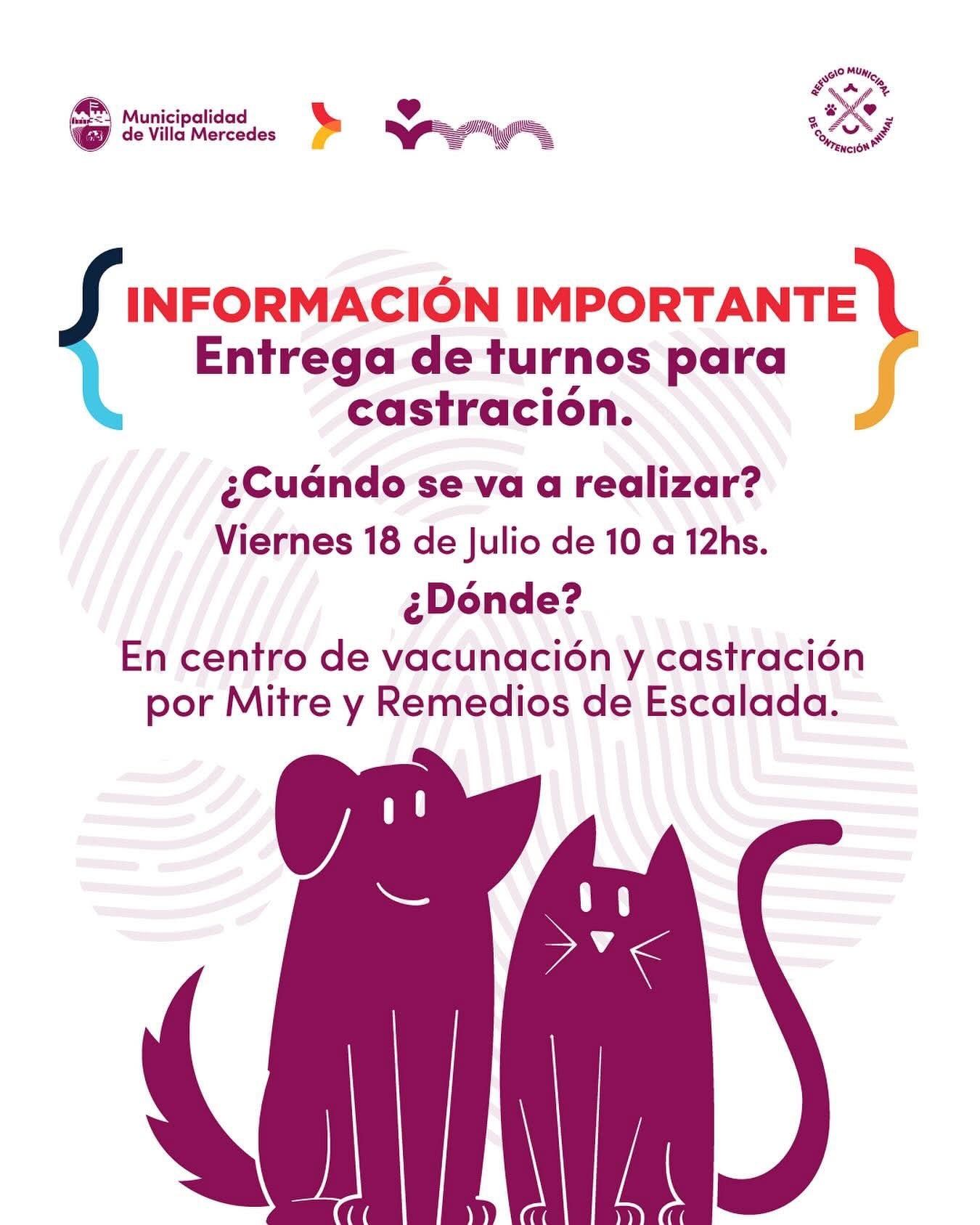 La Secretaría de Producción, Tecnología y Medio Ambiente, junto al Refugio de Contención Animal, realizará una nueva entrega de turnos para castraciones este viernes 18 de julio, en la intersección de Remedios de Escalada y Mitre, en el horario de 10 a 12 hs.