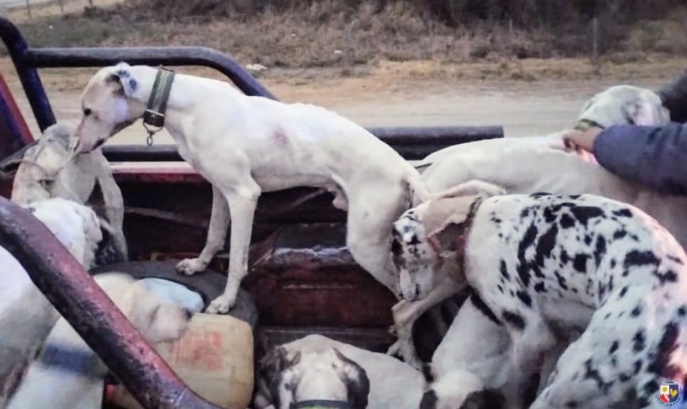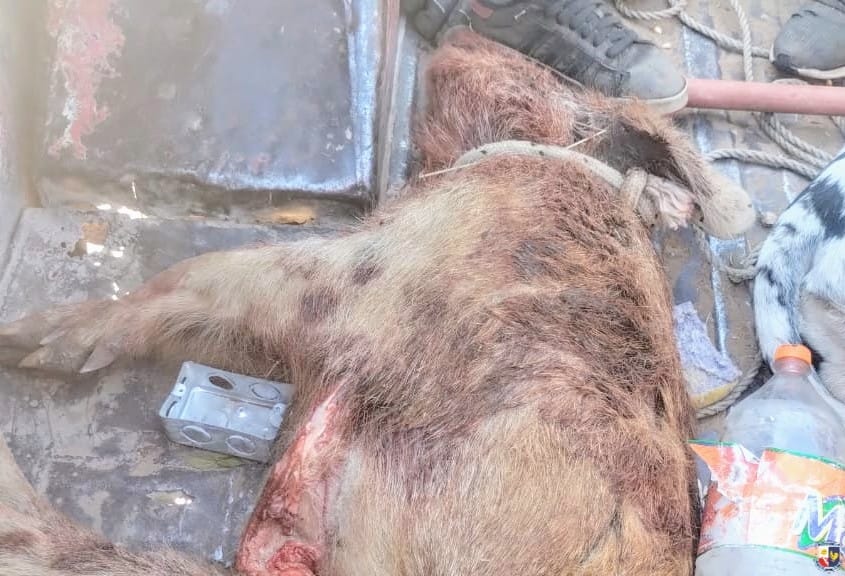 Los uniformados detuvieron la marcha de una camioneta Ford F-100, en la que viajaban seis adultos y dos menores de 12 y 15 años. Durante la requisa, se constató que transportaban diez perros mestizos, utilizados habitualmente para caza mayor, y un jabalí sin vida y eviscerado, que fue decomisado.