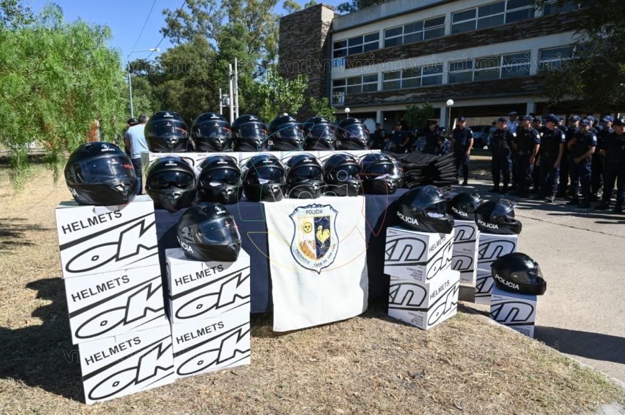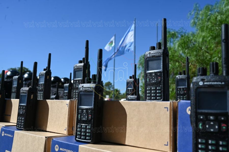 Durante el acto, también se concretó la entrega de 30 motos, 60 cascos reglamentarios y 62 chalecos de protección balística al Comando Radioeléctrico de Villa Mercedes, además de radios de comunicación, incluyendo equipos específicos para el área de Eventos.