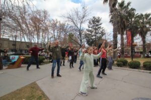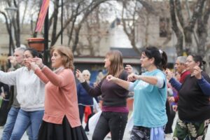 Adultos y familias de Villa Mercedes le pusieron ritmo y tradición a la tarde de ayer en la Plaza del Sesquicentenario, donde se realizó una clase abierta de folklore a cargo del profesor Pablo Castro.