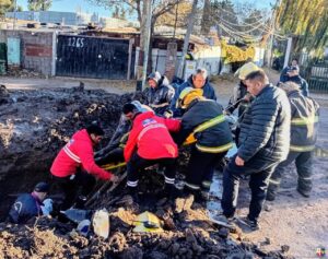 Un operario de SerBa fue rescatado este martes por la mañana, tras quedar atrapado mientras realizaba tareas de mantenimiento en una cañería principal sobre la avenida Raúl Alfonsín, entre las calles Chacho Peñaloza y Catamarca, en la ciudad de San Luis.