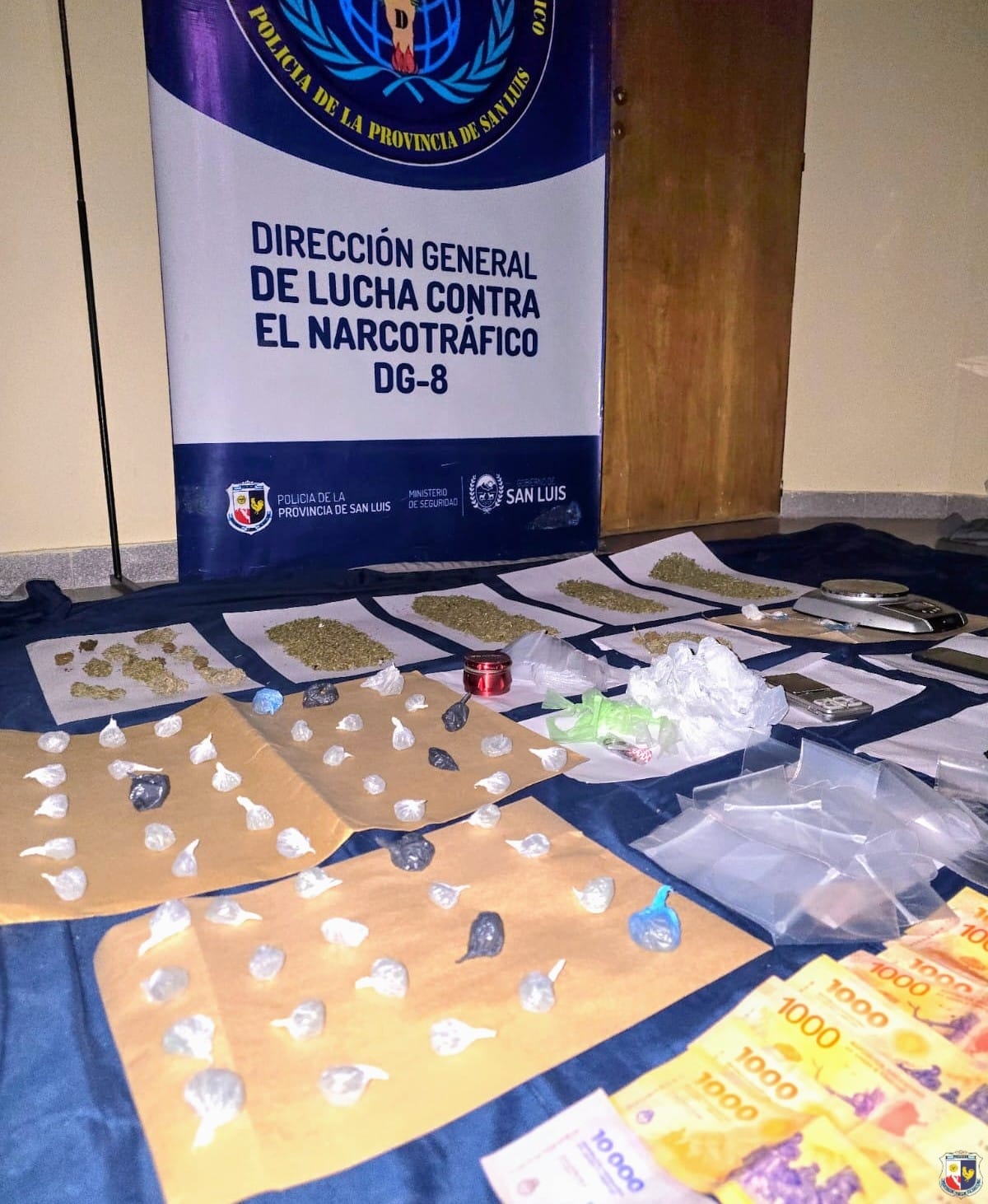 Este viernes, en un operativo encabezado por la Dirección General de Lucha Contra el Narcotráfico, la Policía desarticuló un punto de venta y distribución de drogas en Villa Mercedes.