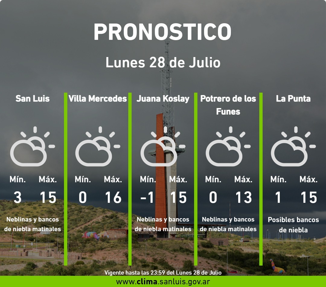 Después de un fin de semana gélido en Villa Mercedes, el tiempo comienza a dar señales de alivio. Según datos de la Red de Estaciones Meteorológicas (REM), este lunes la mínima será de 0 grados, aunque durante la jornada la temperatura irá en ascenso hasta alcanzar una máxima de 16°C.
