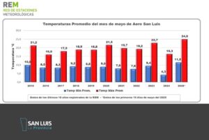 Temperaturas anómalas: La primera quincena de mayo registró máximas cercanas a 25°C, valores no vistos desde 2015.