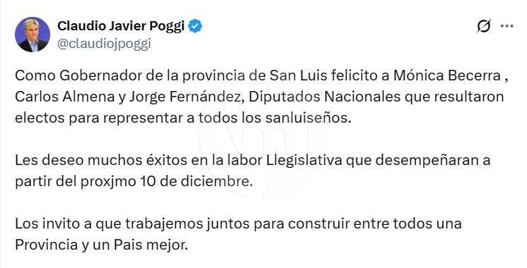 Los nuevos representantes serán Mónica Becerra, oriunda de Villa Mercedes, y Carlos Almena, de Merlo. Por su parte, el Partido Justicialista mantuvo la banca que ponía en juego, con la elección del tilisarense Jorge “Gato” Fernández como su nuevo diputado nacional.