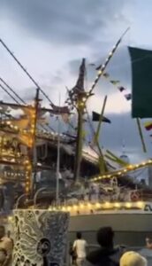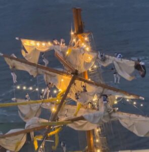 Hasta el momento, no se ha determinado la causa exacta del choque, aunque una de las hipótesis apunta a posibles fallas mecánicas. El buque transportaba alrededor de 300 personas, y tras el impacto, varios marineros quedaron colgando del mástil antes de ser rescatados.