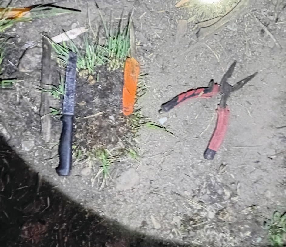 Durante la requisa, los uniformados hallaron una bolsa con cables de distintos tamaños, tres cuchillos y una pinza. Según indicaron fuentes federales, el individuo habría cortado cables de un pilar de luz que iluminaba la parte posterior del predio.
