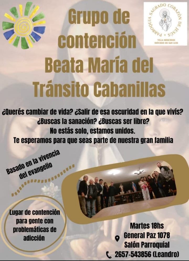 Actualmente, Leandro integra el grupo Beata María del Tránsito Cabanillas, que se reúne todos los martes a las 18 h en el Salón Parroquial de la Parroquia Sagrado Corazón, ubicado en General Paz 1078. Allí se acompaña tanto a personas con adicciones como a sus familias: “No solo el adicto necesita sanar, también su entorno”.