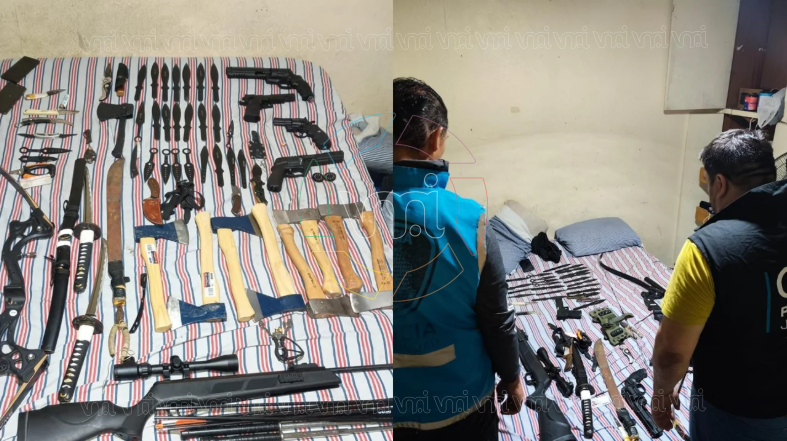 Amenazó a su hermano y a un niño de 9 años: tenía cuchillos, hachas, catanas y armas de aire comprimido