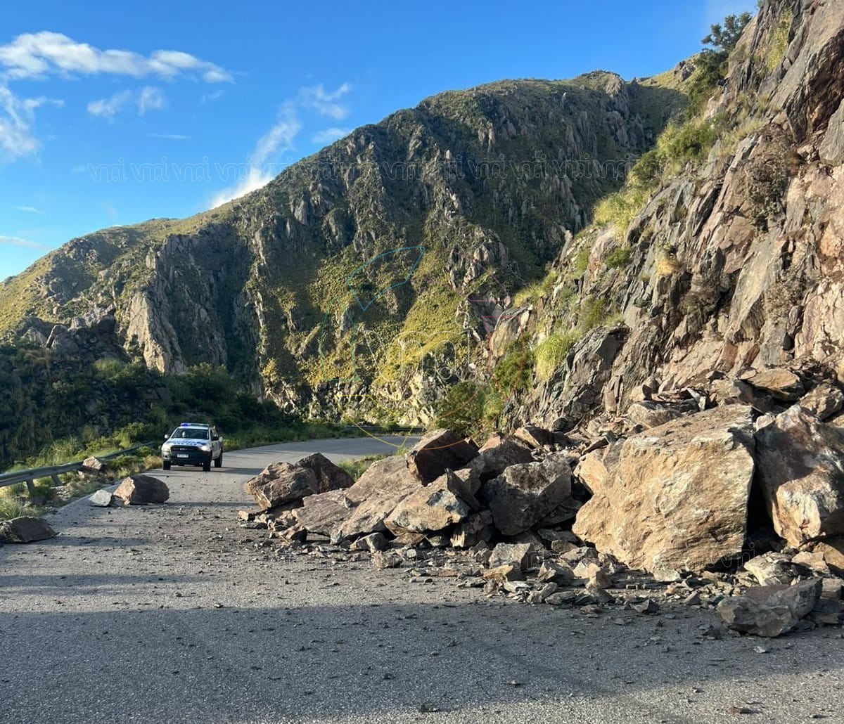 Un derrumbe en la zona serrana obligó a realizar un corte preventivo del camino que une Nogolí con Río Grande, informaron desde la Comisaría Distrito 45°.