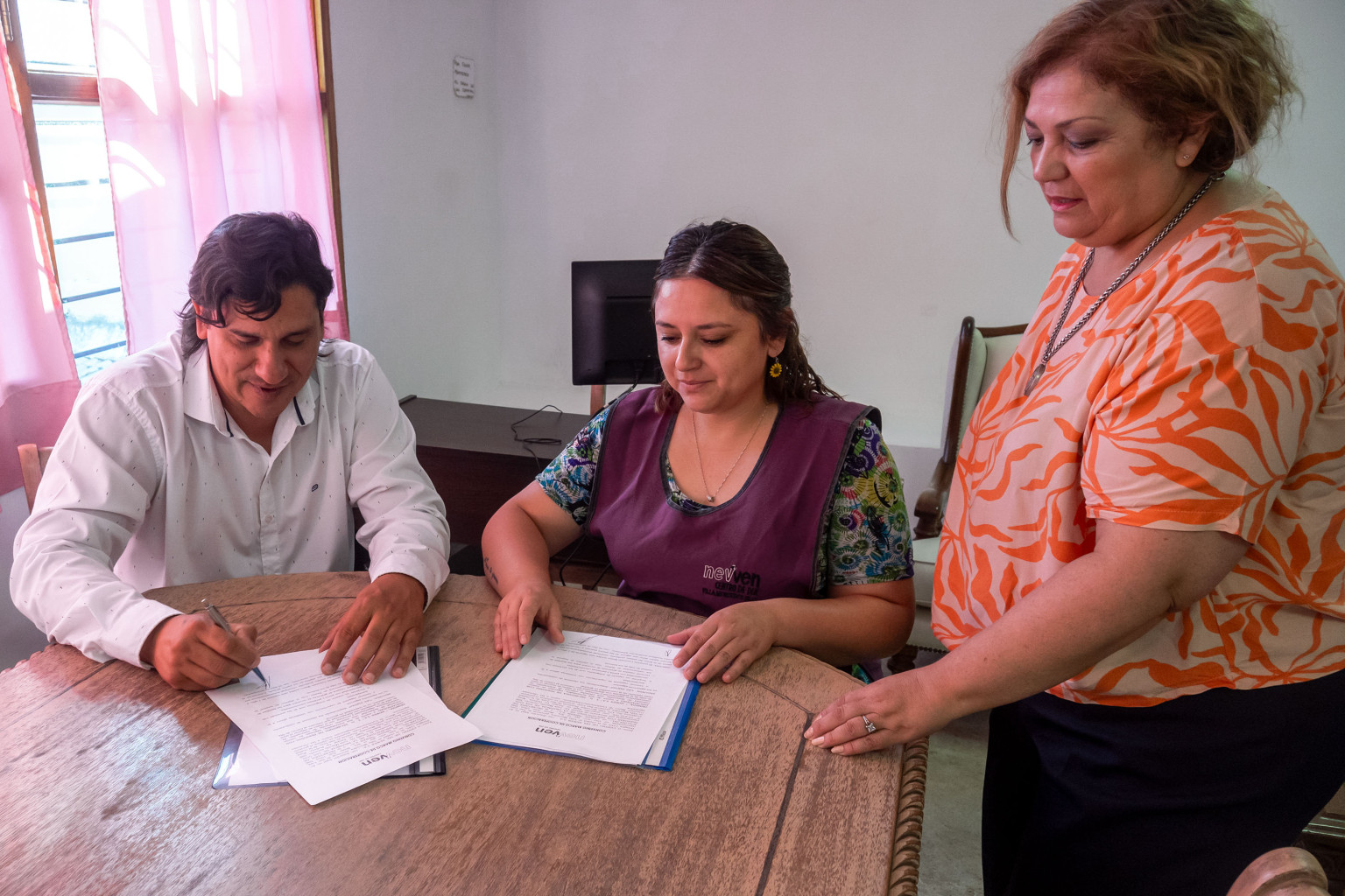Luis Giraudo, al frente de la cartera de Personas con Discapacidad, firmó el documento junto a María José Ulloa, directora del establecimiento. También estuvieron presentes Aarón Schoenakker, parte de la institución, y la asesora legal de la Secretaría, Claudia Pereyra.