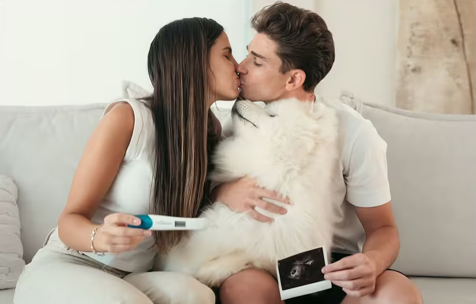 Horas después, ambos publicaron una emotiva imagen en sus redes sociales, donde posan con su perro Tarzán y un mensaje cargado de ternura: “Foto oficial del nuevo equipo titular: Papá, mamá, Tarzán… y el próximo fichaje en camino. ¡Estamos muy felices! Te esperamos con todo el amor del mundo 🤍”.