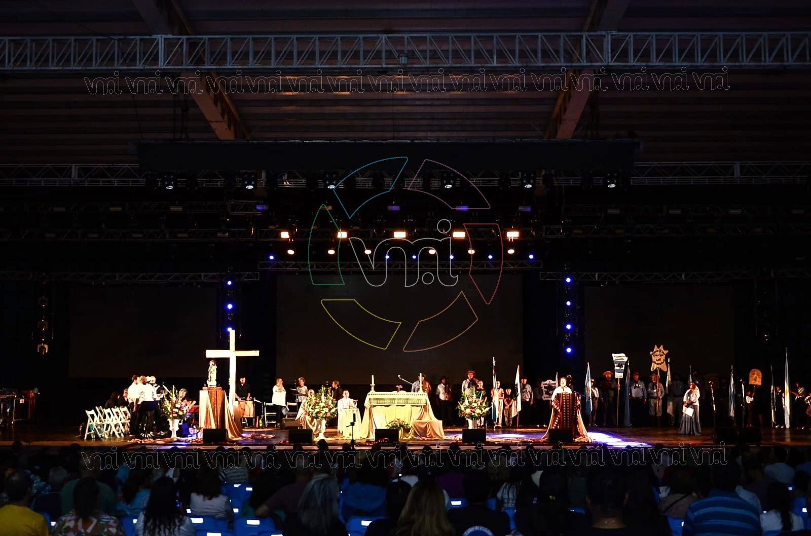 La Santa Misa se desarrolló sobre el escenario Alfonso y Zavala y estuvo a cargo del padre Sergio Simunovich, quien además realizó la bendición de instrumentos musicales y vestimenta gaucha, en un gesto cargado de simbolismo y tradición.