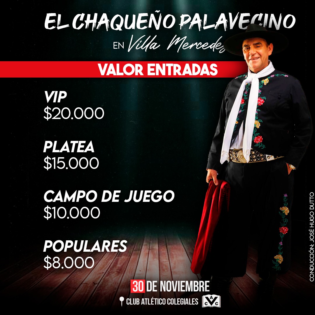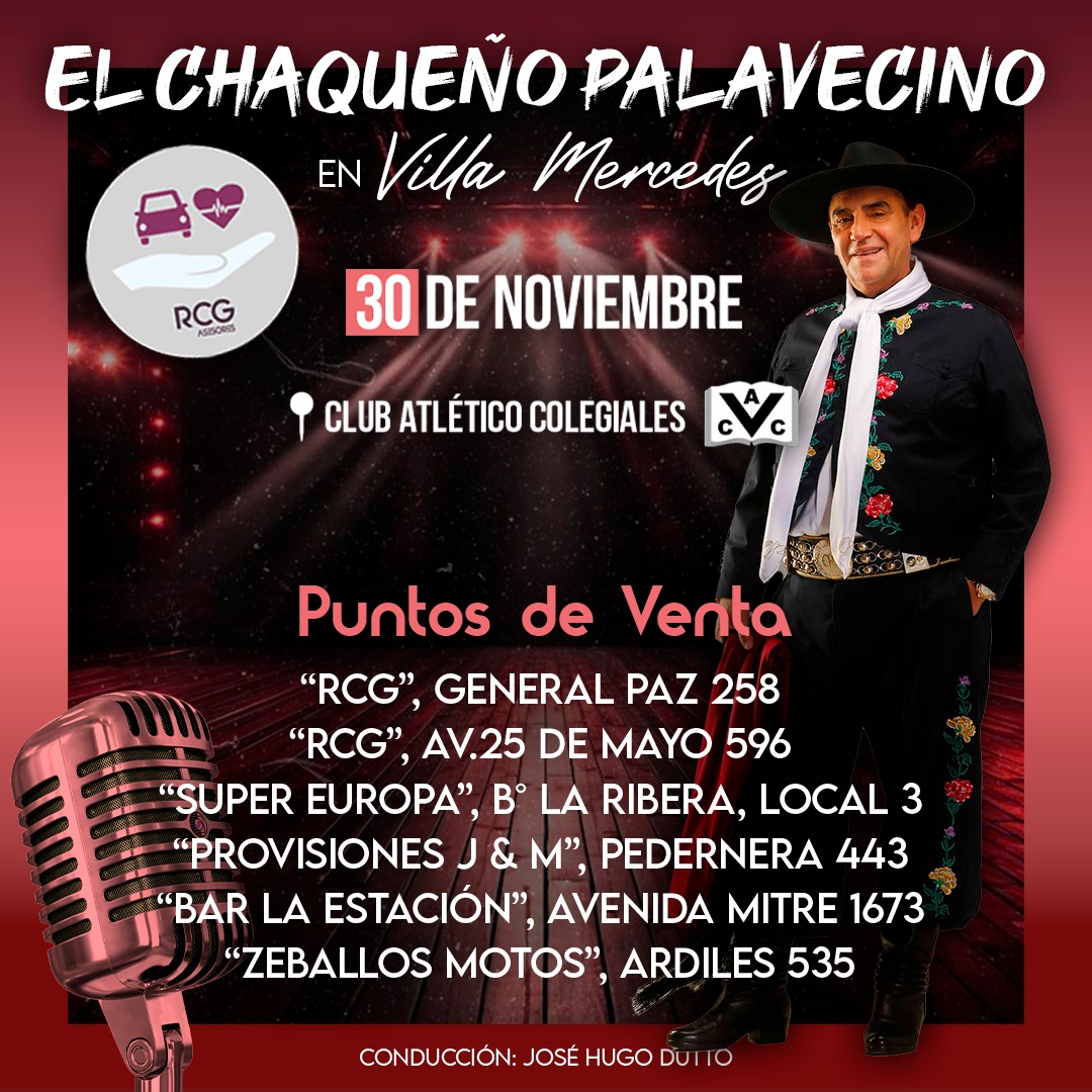 El sábado 30 de noviembre, la ciudad de Villa Mercedes se vestirá de tradición con la esperada presentación del Chaqueño Palavecino, uno de los máximos exponentes de la música folclórica argentina.
