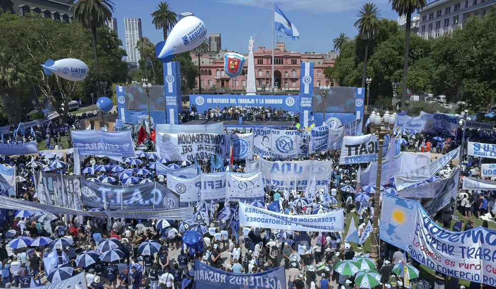 La Confederación General del Trabajo (CGT) ratificó este jueves su rechazo a la reforma laboral promovida por el gobierno de Javier Milei, durante una movilización en Plaza de Mayo que reunió a dirigentes sindicales, políticos y organizaciones sociales.