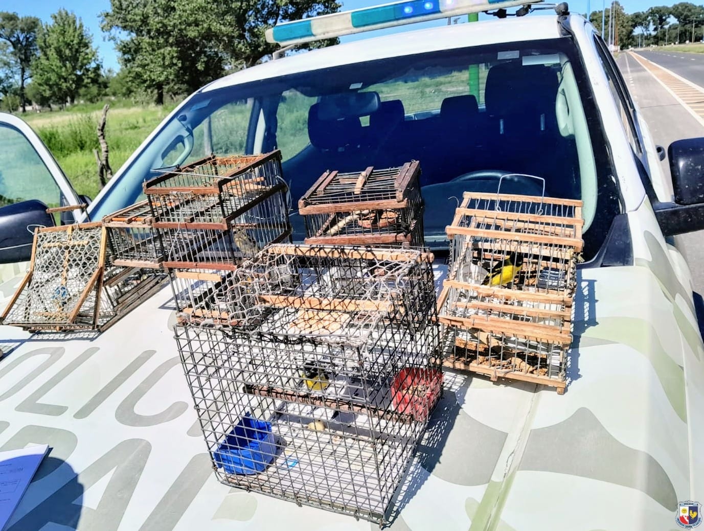 El hecho: Este martes, en la ciudad de Villa Mercedes, efectivos de la División Respuesta Inmediata Motorizada (DRIM) interceptaron a un hombre de 28 años y a dos adolescentes de 13 y 16 años mientras realizaban recorridos preventivos en la intersección de las calles Nelson y Leandro N. Alem. Los tres transportaban seis jaulas que contenían ocho aves silvestres: cuatro jilgueros y cuatro corbatitas.