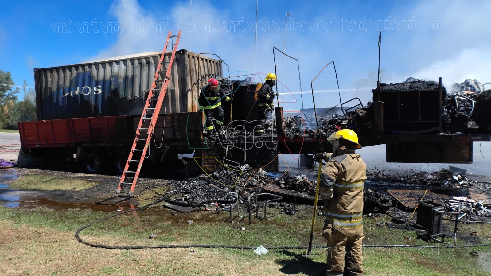 No obstante, la totalidad de la carga resultó afectada por el fuego, incluyendo los materiales eléctricos y los productos químicos transportados. No se registraron heridos, informaron las autoridades intervinientes.