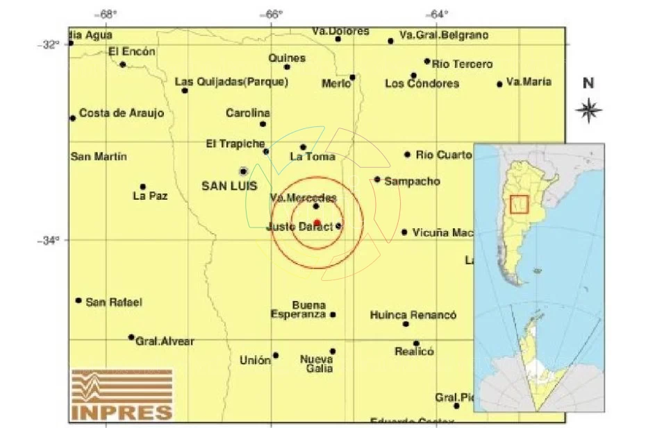 De acuerdo al parte oficial, el movimiento tuvo una profundidad de 5 kilómetros, con epicentro ubicado a 15 kilómetros al sur de Villa Mercedes, a 82 kilómetros al suroeste de Sampacho y a 87 kilómetros al sur de La Toma.
