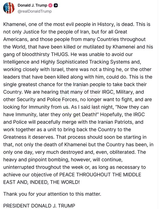 En paralelo, distintos medios de Israel citaron a altos funcionarios que aseguran contar con pruebas que confirmarían la muerte de Khamenei, aunque hasta el momento no se han presentado evidencias públicas verificables.