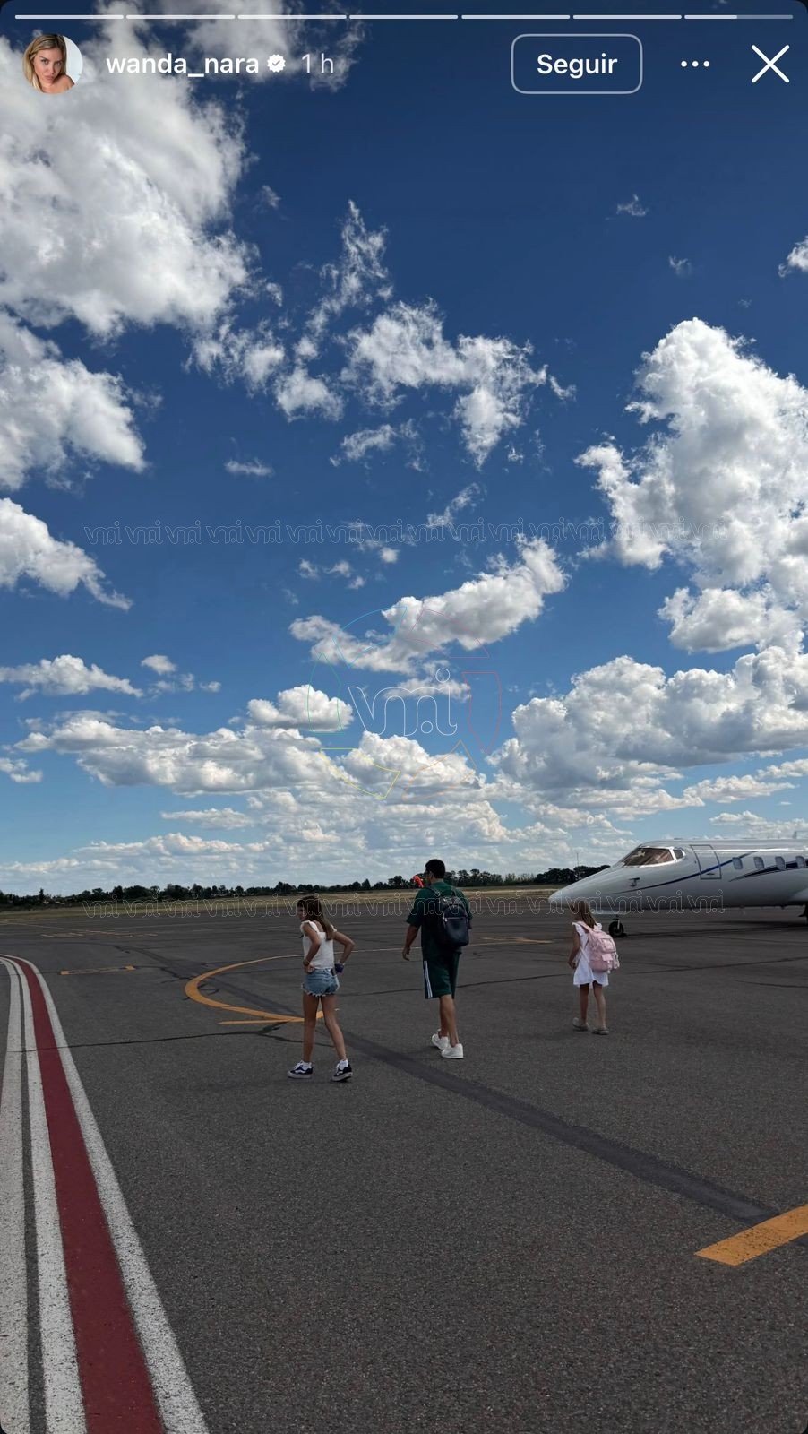 El viaje tuvo como objetivo acompañar a Valentino López, hijo de Maxi López, quien se encuentra realizando la pretemporada en la provincia con las divisiones inferiores de River Plate. Wanda, actual conductora del ciclo MasterChef Celebrity, confirmó su presencia con un saludo aéreo a través de sus redes sociales: “Hola San Luis”.