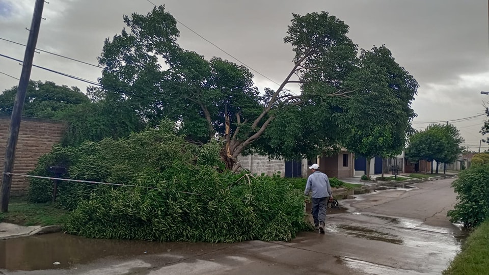 Una intensa tormenta eléctrica sorprendió esta tarde a los habitantes de Villa Mercedes, con el barrio Ciudad Jardín como uno de los más afectados. Los vientos de hasta 50 km/h en el sector noroeste dejaron su marca al derribar árboles, postes y levantar el techo de la fábrica Poligraf, ubicada en las cercanías del barrio.