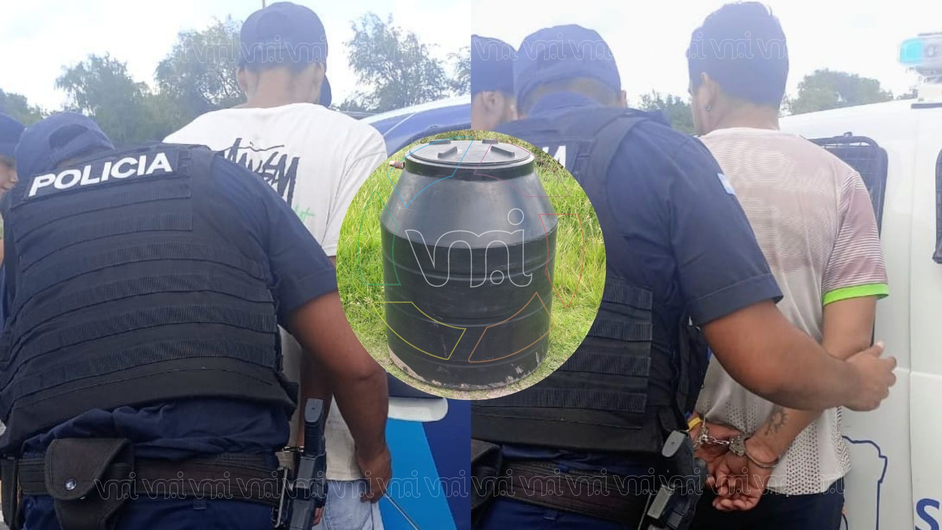 Según informaron fuentes policiales, una agente que realizaba recorridos de prevención del delito en inmediaciones de avenida Presidente Juan Domingo Perón y calle Dr. Domínguez advirtió la presencia de dos sujetos que circulaban en motocicleta trasladando un tanque de agua de aproximadamente 400 litros.