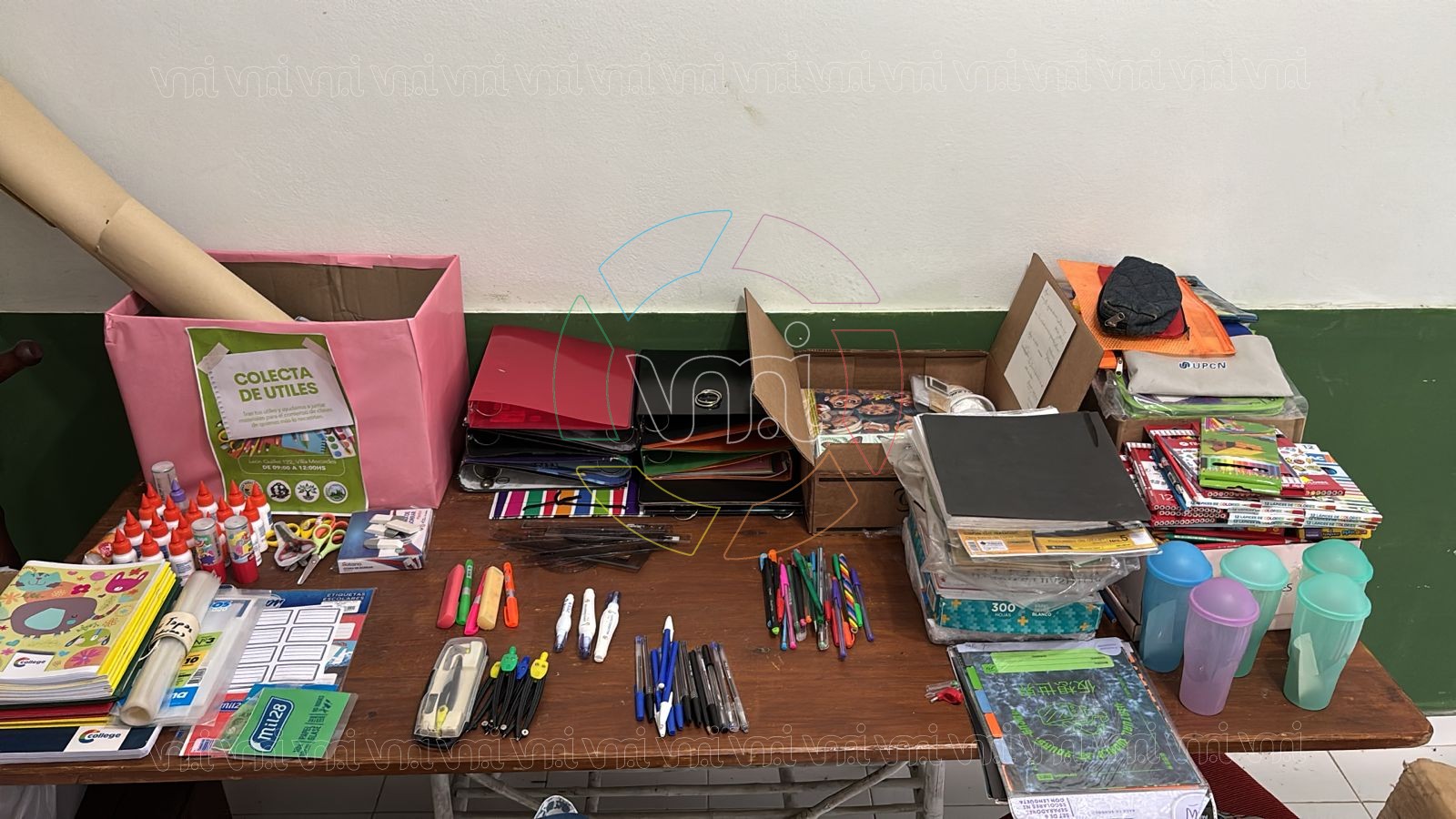 Tras el cierre de la colecta, los organizadores compartieron imágenes que muestran parte de los útiles donados por la comunidad, entre los que se encuentran cuadernos, lápices, carpetas, mochilas, cartucheras y distintos materiales necesarios para las actividades escolares.
